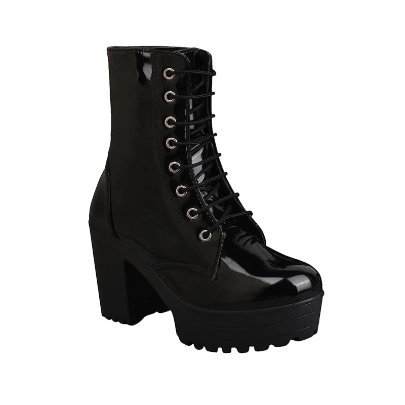 Shoetopia النساء والفتيات الدانتيل حتى كتلة الأحذية الغربية ذات الكعب العالي
